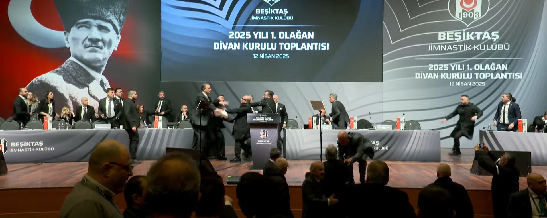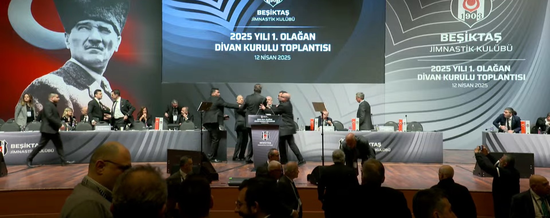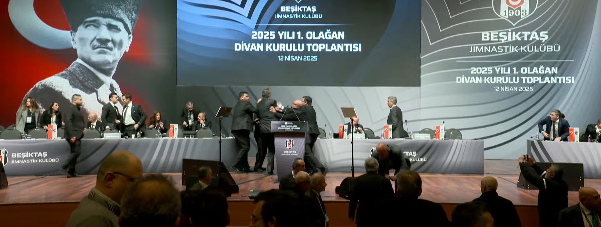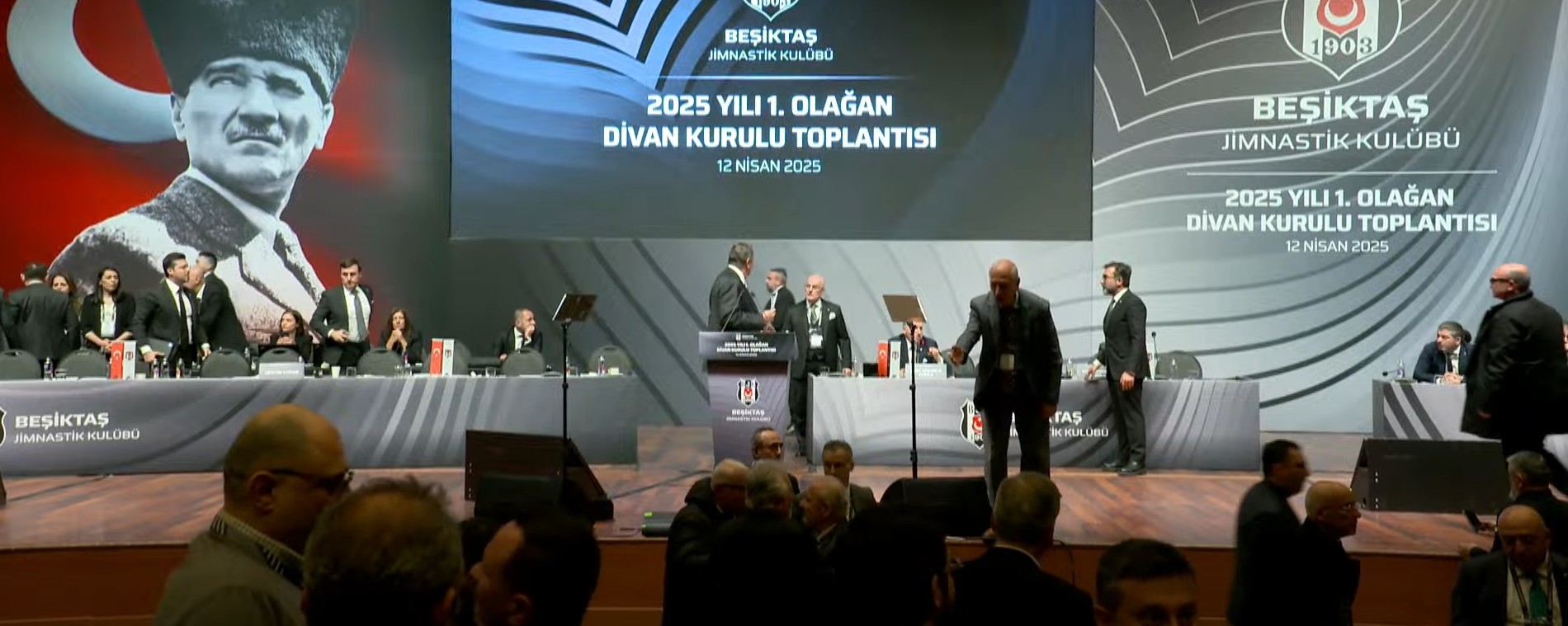 Beşiktaş Divan Kurulu'nda ortalık karıştı. Siyah-beyazlı kulübün eski başkanı Hasan Arat ile Divan Başkanı Tevfik Yamantürk arasında kürsüde kavga çıktı.