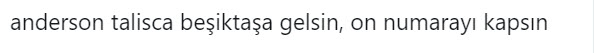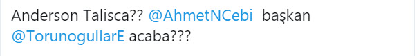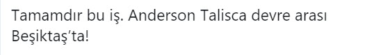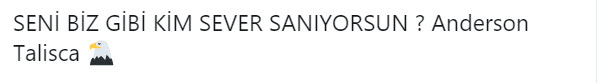 Beşiktaş'ta geçirdiği rüya gibi 2 sezonun ardından Brezilya Milli Takımı'na kadar yükselen Anderson Talisca için, transfer olduğu Çin'de işler yolunda gitmiyor. Çin basınından büyük tepkiler alan yıldız oyuncunun, takımından ayrılmayı düşündüğü iddia edildi. Çıkan haberler sonrası hemen harekete geçen siyah beyazlı taraftarlar, sosyal medyada fırtınalar kopardı.
