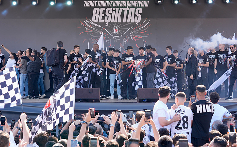 Beşiktaş, kazandığı Ziraat Türkiye Kupası'nı taraftarlarıyla buluşturdu. Siyah-beyazlı kulübün Beşiktaş İskele Meydanı'nda gerçekleştirdiği kupa şampiyonluğu kutlamasına çok sayıda taraftar katıldı. BJK Nevzat Demir Tesisleri'nden otobüsle Beşiktaş'a gelen siyah-beyazlı kafile, Dolmabahçe istikametinden taraftarların yoğun ilgisi altında meydana ulaştı. Meydana kurulan platforma anonslarla çıkan siyah-beyazlı futbolcular, kupa şampiyonluğunu taraftarlarıyla birlikte kutladı.