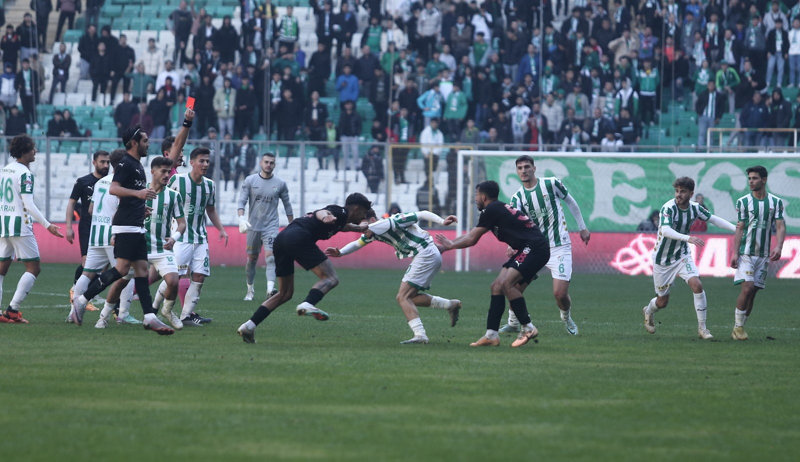 Bursaspor-Diyarbekirspor maçında büyük kriz! 6 kırmızı kart! Seyirciler çıldırdı