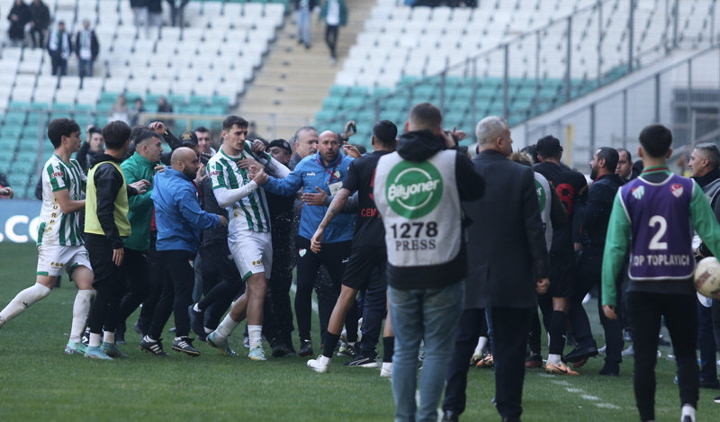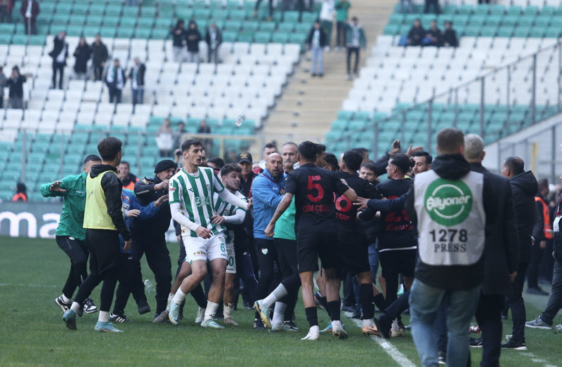 TFF 2. Lig Beyaz Grup'ta Bursaspor ile Diyarbekirspor arasında oynanan 18. hafta mücadelesinde futbolcular arasında arbede yaşandı. Çıkan arbede sonucunda 6 futbolcu kırmızı kart gördü. Gerilimin iyice büyümesi sonrası taraftarlar sahaya yabancı maddeler attı. Polis ekipleri ise seyircilerin sahaya girmemesi için önlem aldı. Sahaya giren 1 taraftar gözaltına alındı.