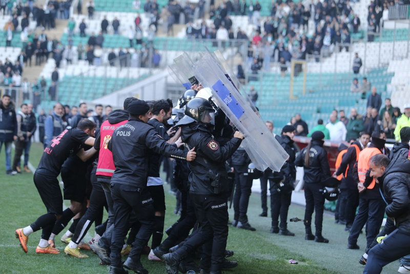 Gerilimin iyice büyümesi sonrası taraftarlar sahaya yabancı maddeler attı. Polis ekipleri ise seyircilerin sahaya girmemesi için önlem aldı.