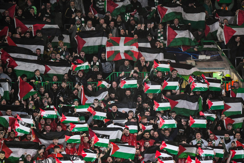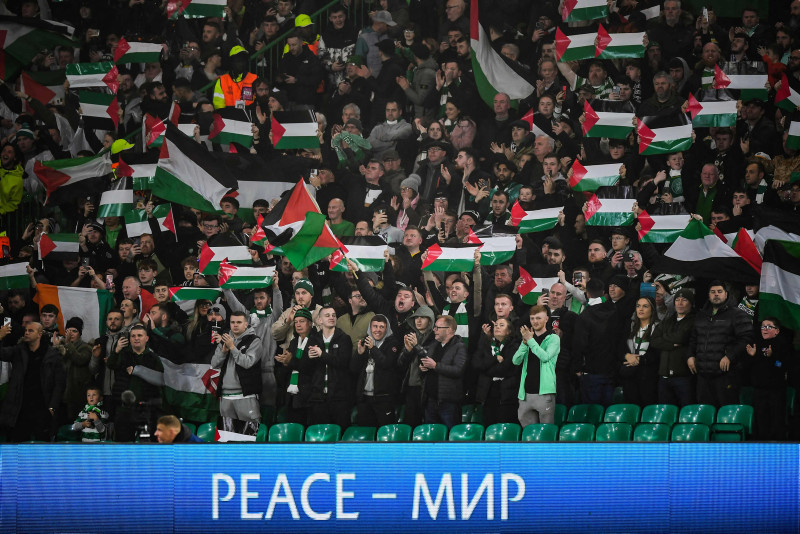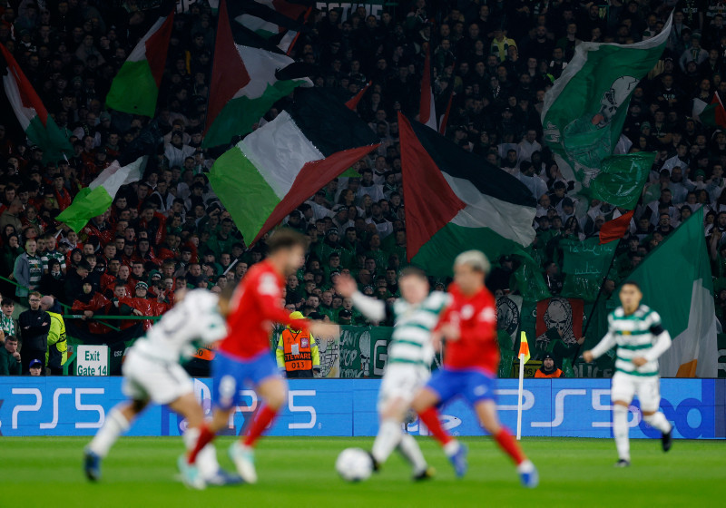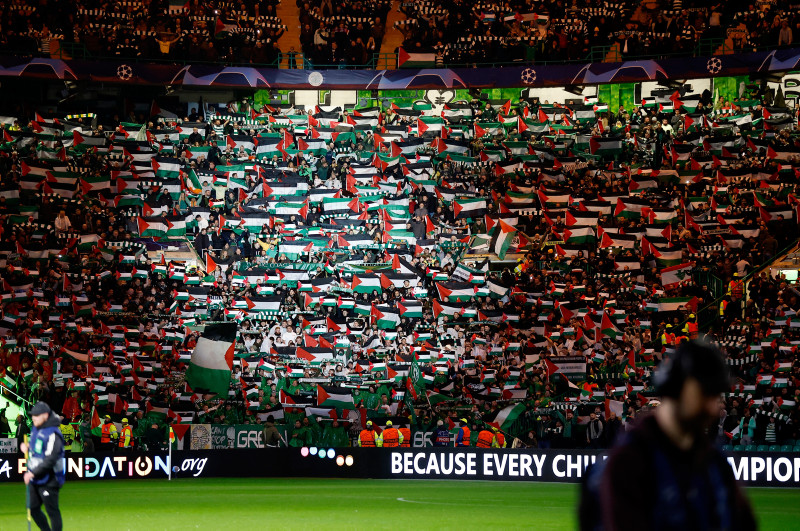 Avrupa'nın en prestijli turnuvası olan Şampiyonlar Ligi'nde mücadele eden İskoç temsilcisi Celtic'in taraftarları, Atletico Madrid maçında İsrail'in abluka altındaki Gazze'ye saldırıları nedeniyle Filistin'e destek verdi.