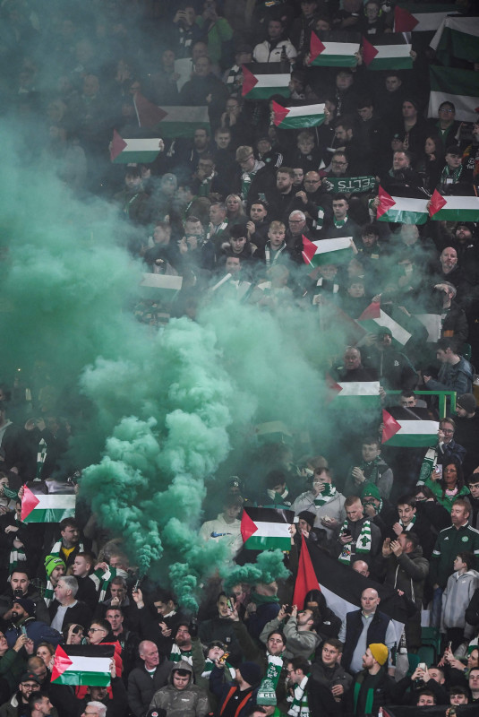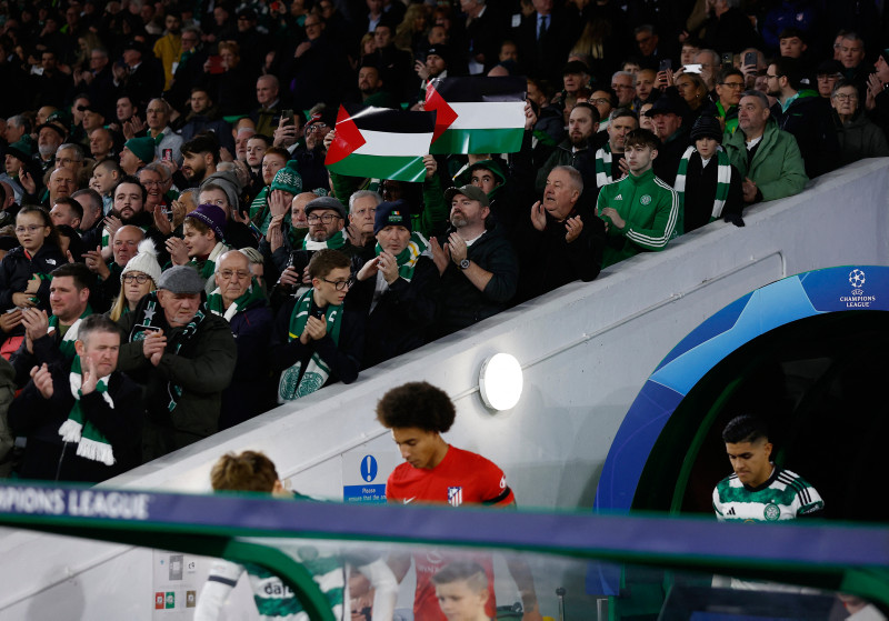 UEFA Şampiyonlar Ligi'nde E Grubu'nun 3. maçında İskoç temsilcisi Celtic evinde İspanyol devi Atletico Madrid'i konuk etti. Yeşil beyazlı taraftarlar, İsrail'in abluka altındaki Gazze'ye saldırıları nedeniyle Filistin'e destek verdi.