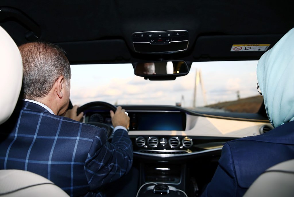 Cumhurbaşkanı Recep Tayyip Erdoğan eşi Emine Erdoğan ile birlikte kendi kullandığı otomobille Yavuz Sultan Selim Köprüsü'nden geçti.
