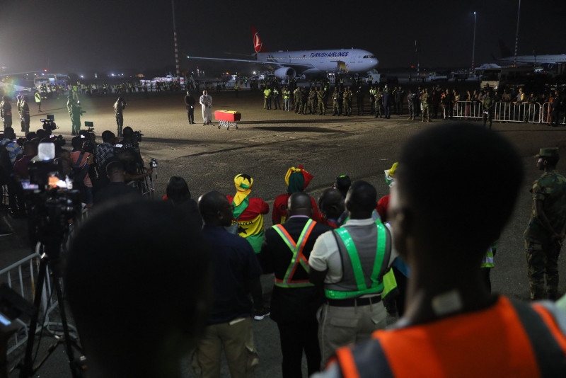 Atsu'nun cenazesini taşıyan Türk Hava Yollarının (THY) TK 629 sayılı İstanbul-Akra uçağı, Gana'nın başkenti Akra'daki Kotoka Uluslararası Havalimanı'na indi.