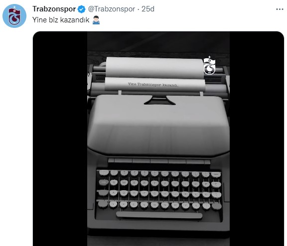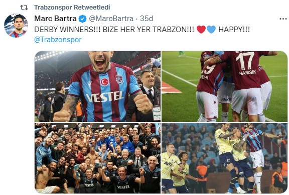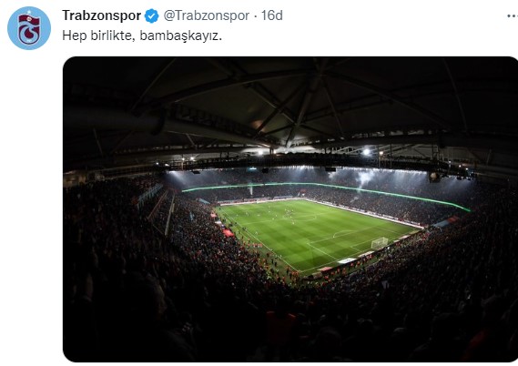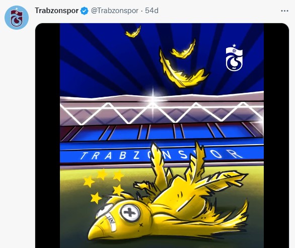 Spor Toto Süper Lig'in 15. haftasında Trabzonspor, sahasında Fenerbahçe'yi 2-0 yendi. Bu zafer sonrası Trabzonspor Kulübü'nün sosyal medya hesabından Kanarya'ya göndermede bulunulan paylaşımlar yer aldı. Twitter adresinde yer alan görsellerde, "Hep birlikte, bambaşkayız." , "Yine biz kazandık" , "Başı dönüp yolunu kaybedenler için: ᴀɪʀᴘᴏʀᴛ ᴛʜɪꜱ ᴡᴀʏ" ifadeleri yer aldı.
