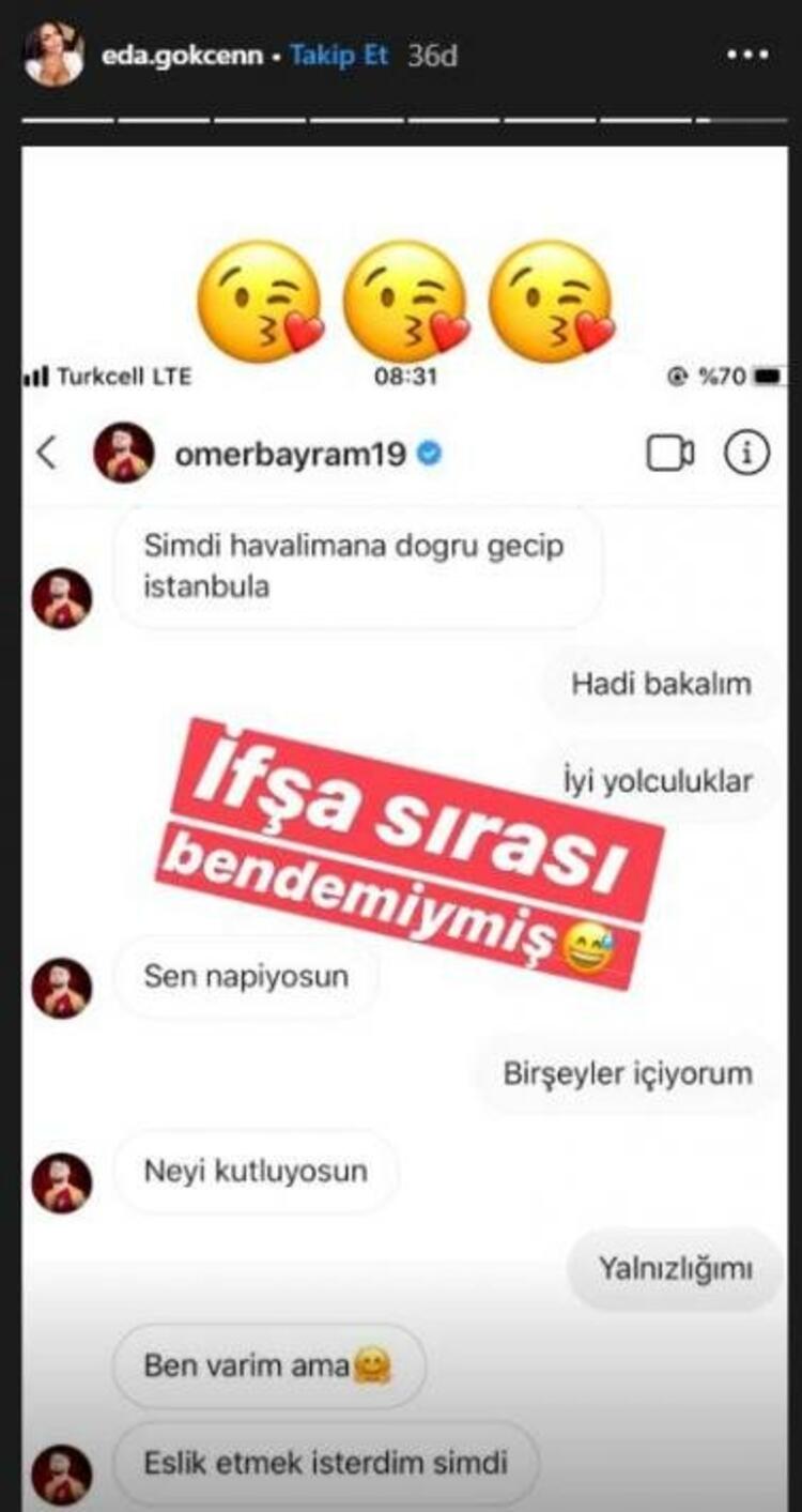 Süper Lig takımlarından Galatasaray'da bu sezon gösterdiği performansla dikkatleri üzerine çekmeyi başaran Ömer Bayram'ın Instagram mesajlarını Eda Gökçen Kaya ifşa etti.