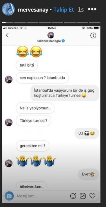 Hesabını yeniden geri aldığını açıklayan Merve Sanay, "Hakan çalhanoğlu ile eşiyle boşanma aşamasındayken konuştuk ve o sırada ayrılıyorlardı. Şu anda evliler ve çocukları olacak. Şu an alakası yok. Birkaç gün konuştuk ve hepsi bu kadar." dedi.