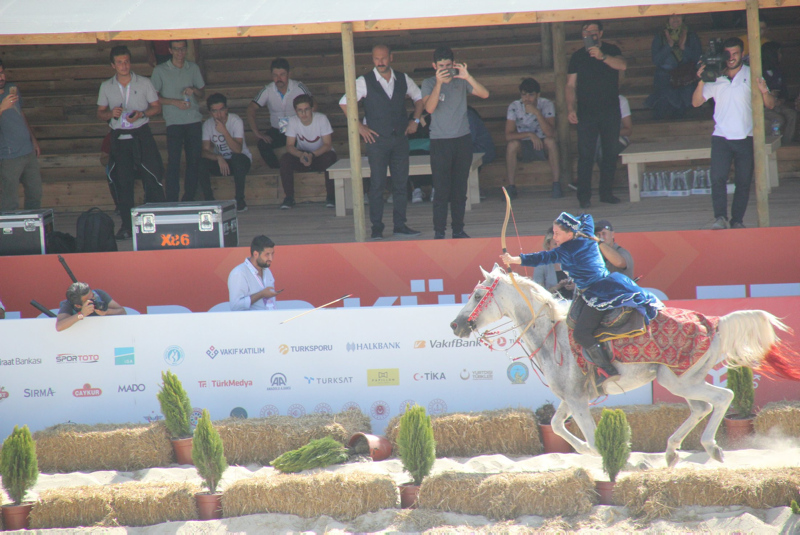 Atatürk Havalimanı'nda düzenlenen 4. Etnospor Kültür Festivali'nde oklu atçılık takımı gösteri yapıldı.
