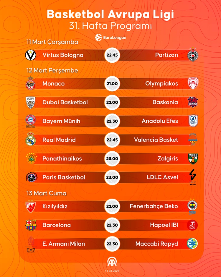 EUROLEAGUE 31. HAFTA MAÇ TAKVİMİ