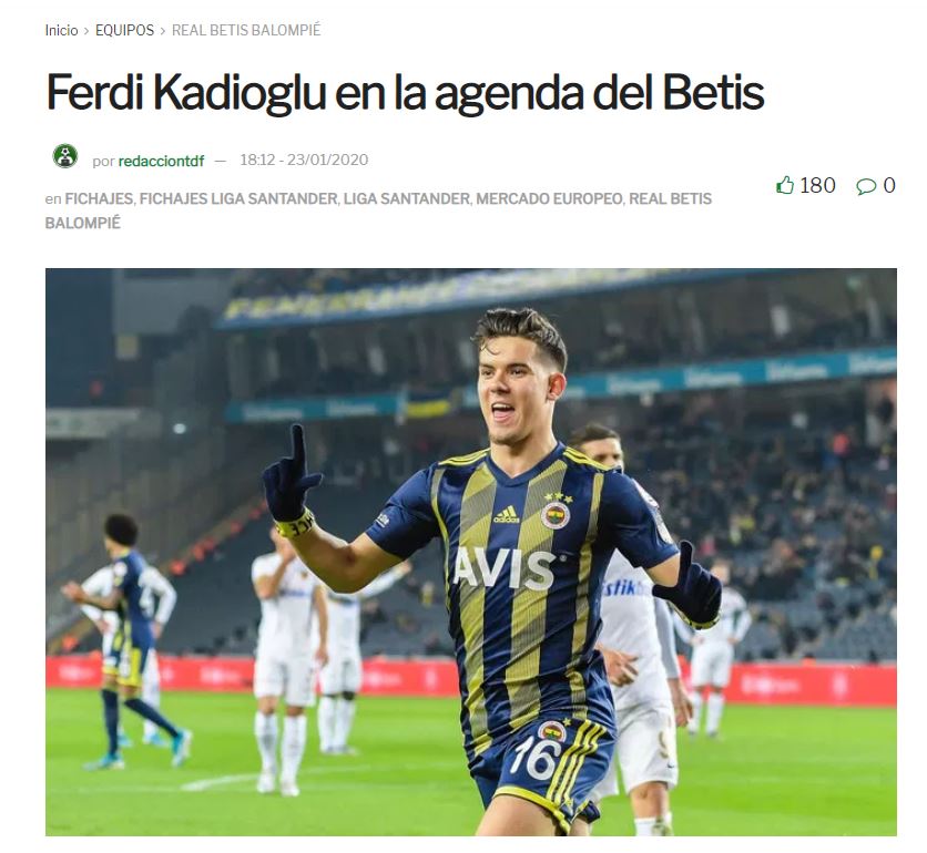 İspanyol basınından Todo Fichajes'te yer alan habere göre Real Betis, Sevilla'ya transfer olma ihtimali bulunan Tello'nun yerine Ferdi'yi listesine aldı ve genç yıldız için sık sık Fenerbahçe maçlarına scout ekibini yollayıp notlar aldırıyor.