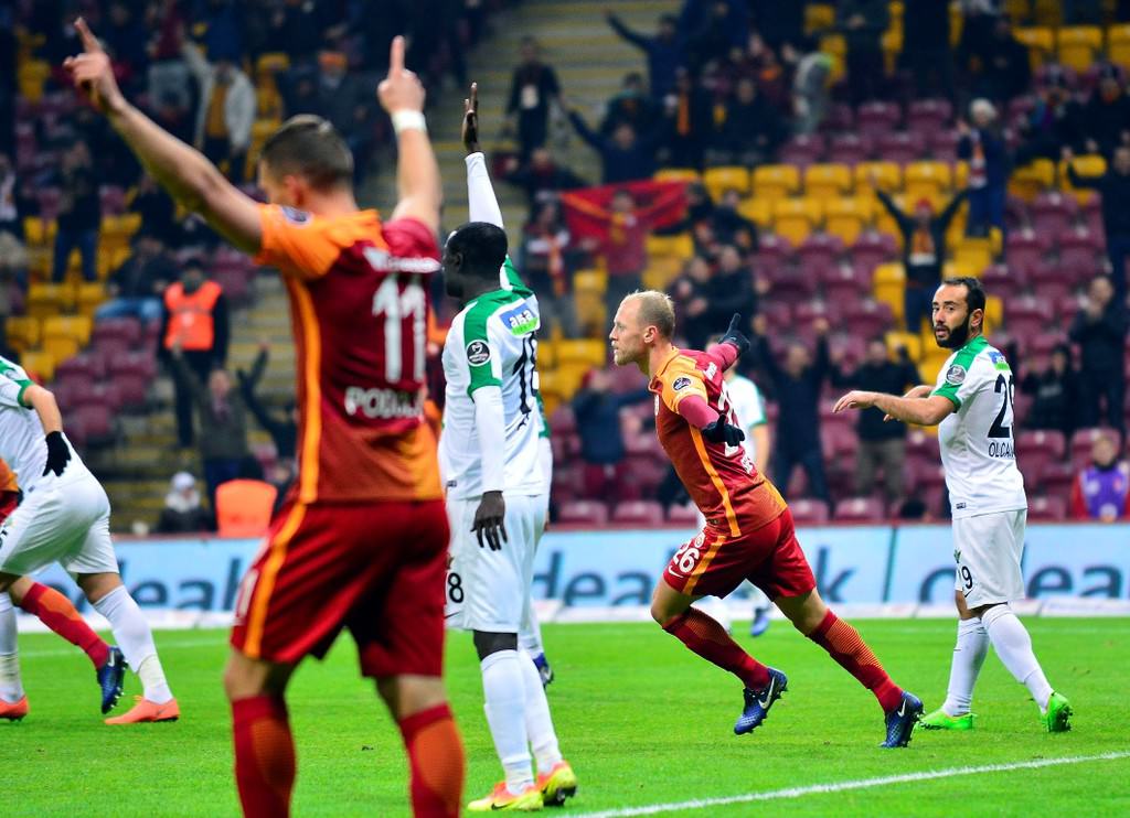 Türk Telekom Arena'da az sayıda taraftarının önünde sahne alan Aslan, Akhisar Belediye'yi gole boğdu. Türk Telekom Arena'da az sayıda taraftarının önünde sahne alan Aslan, Akhisar Belediye'yi gole boğdu. Galatasaray'a farkı getiren golleri Bruma (2), Yasin, Sinan, Semih ve Selçuk kaydetti.