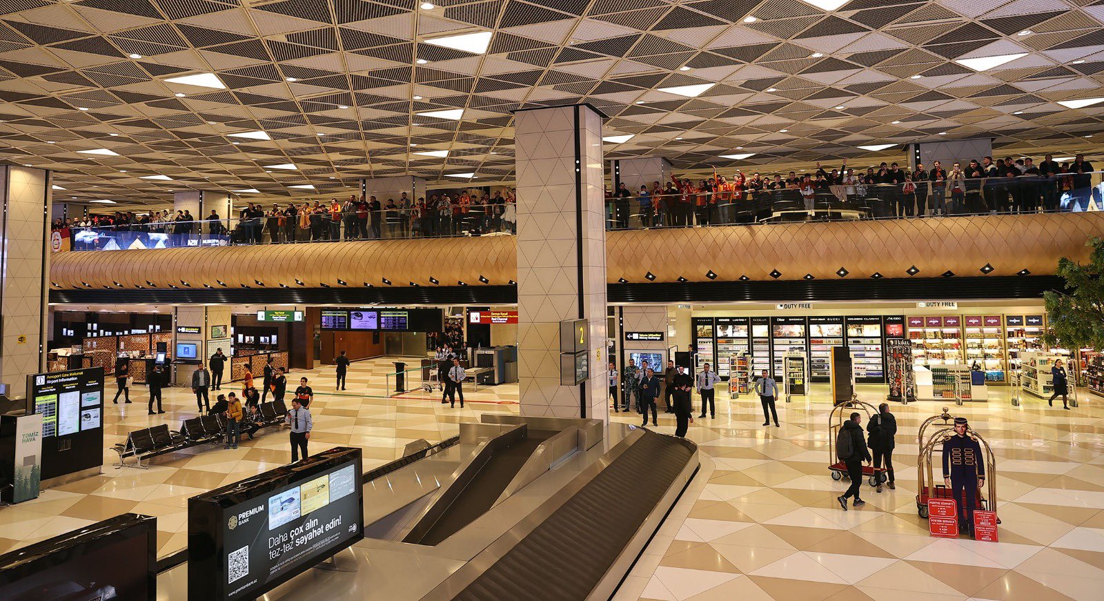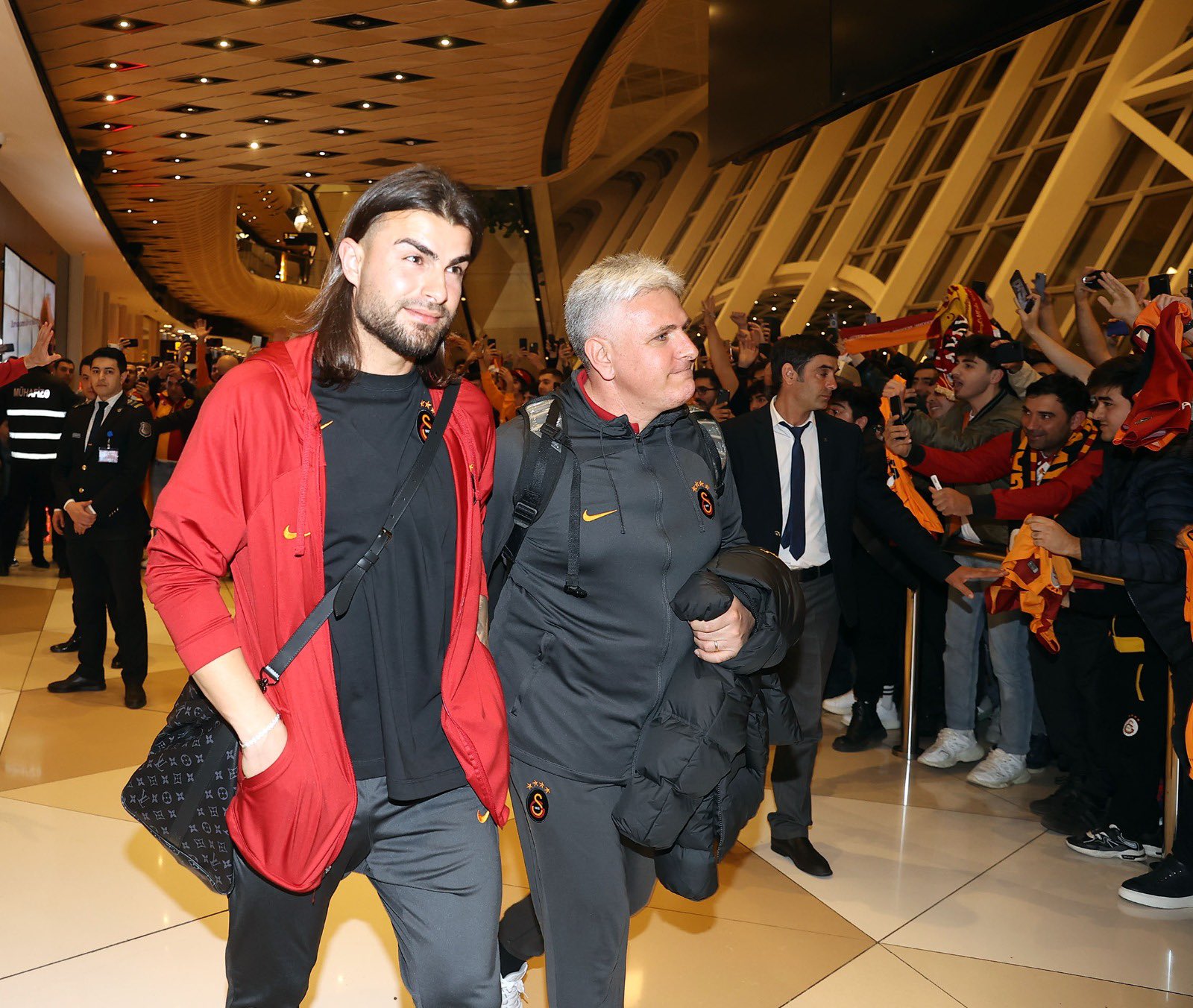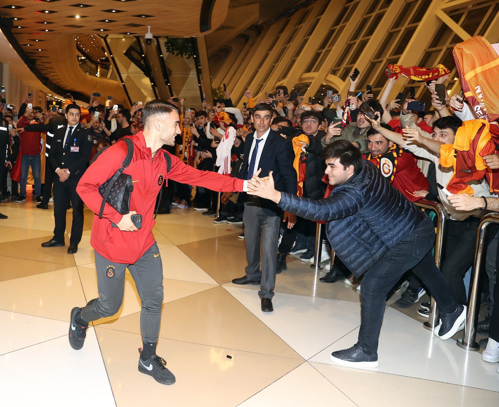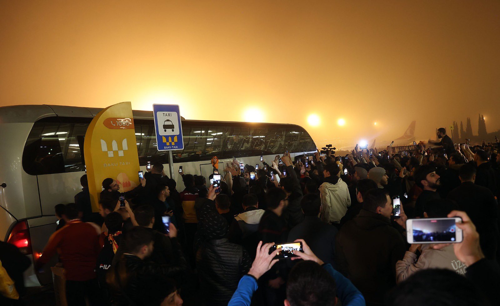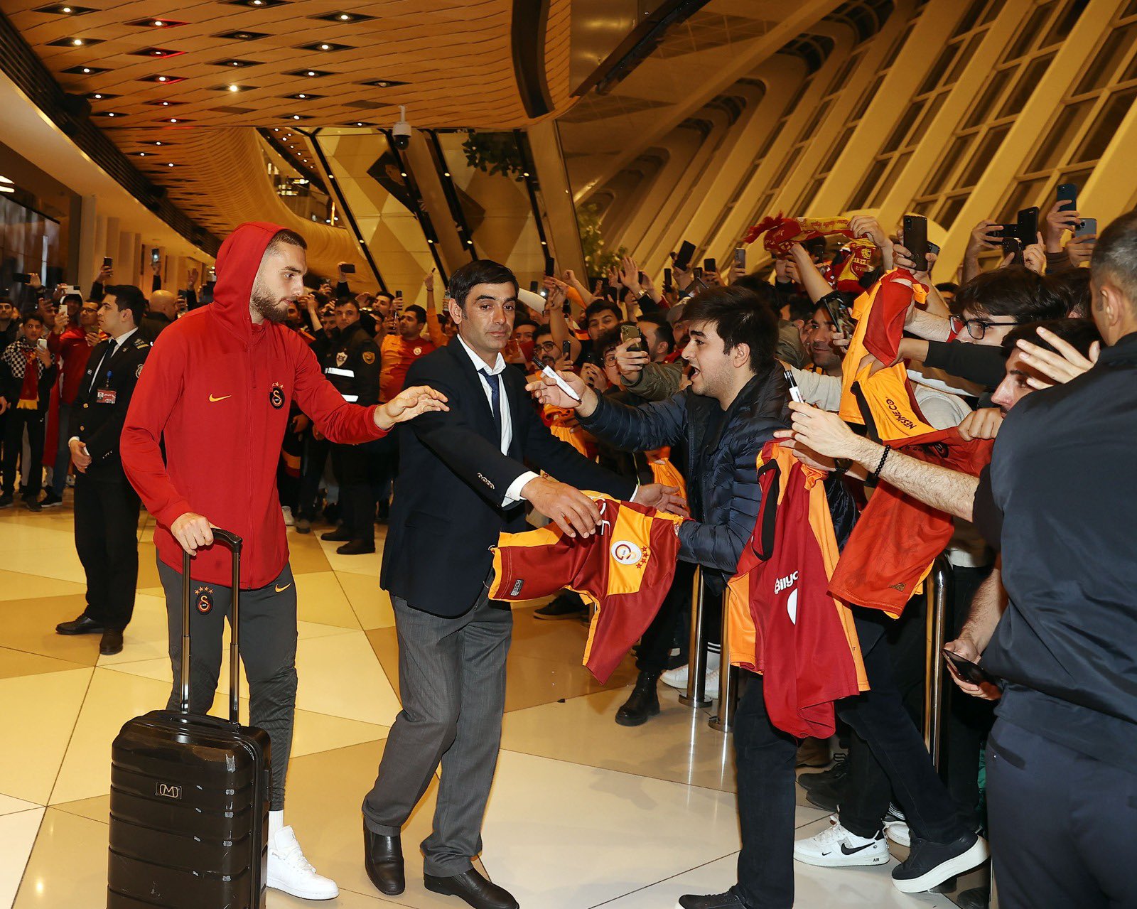 Depremzedeler yararına yapılacak maç için Azerbaycan'a gelen sarı-kırmızılı ekibi, Haydar Aliyev Uluslararası Havalimanı'nda karşılayanlar izdiham oluşturdu.