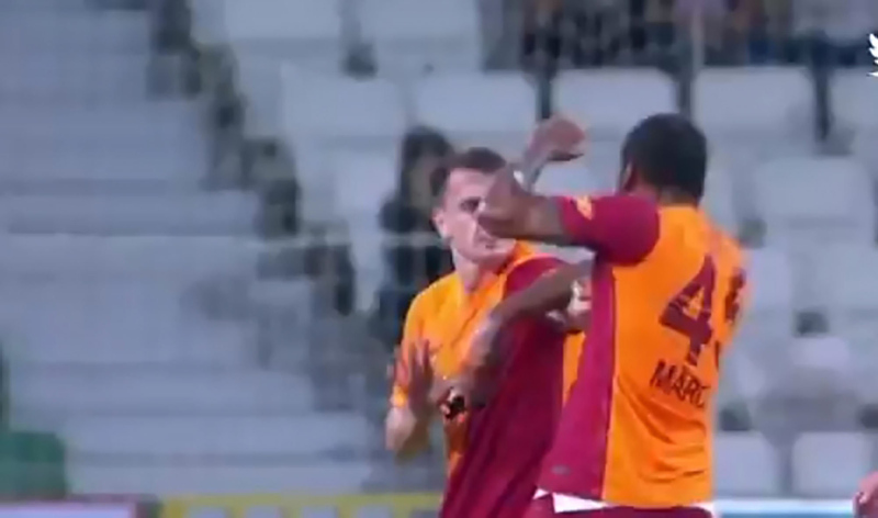 Marcao-Kerem Aktürkoğlu kavgasının Galatasaray'da yarattığı olumsuz hava henüz unutulmamışken, bu sabah antrenmanda yaşanan olay sinirleri iyice gerdi. Sezon başı hazırlık kampında bulunan sarı kırmızılı ekipte genç oyuncu Kerem Aktürkoğlu yine sahnedeydi. Aktürkoğlu, Hollandalı sol bek Patrick van Aanholt ile tekme tokat kavga etti. Yaşanan arbedeye dair görüntülerde oyuncuların tarafları ayırdığı görüldü.