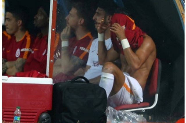 Öfkesi, yüzünden okunan 29 yaşındaki oyuncu, söylenmeye devam edip formasını yere attı. Daha sonra tişört giyen Yasin Öztekin bir süre sonra sakinleşti.