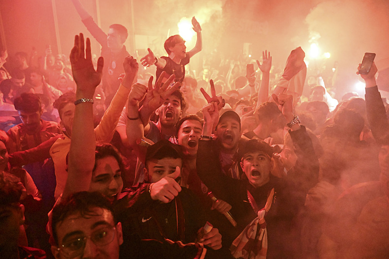 Müsabakayı heyecanla televizyonlardan izleyen sarı-kırmızılı taraftarlar, maçın bitiş düdüğünün ardından sokaklara çıkarak galibiyeti coşkulu bir şekilde kutladılar.