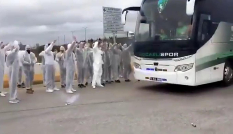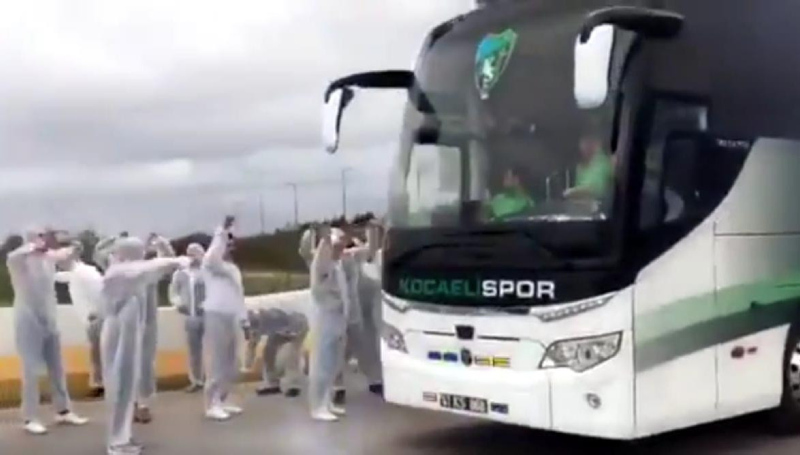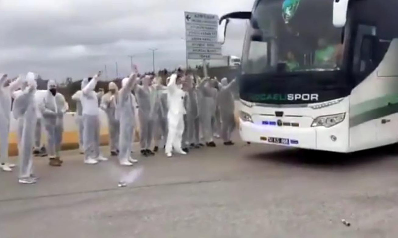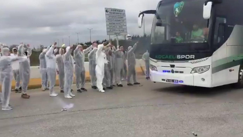 Kocaelispor taraftarlarından koronavirüs sebebiyle ilginç karşılama