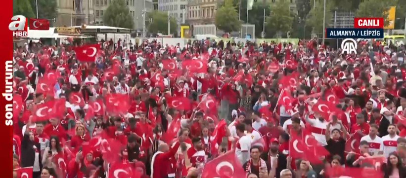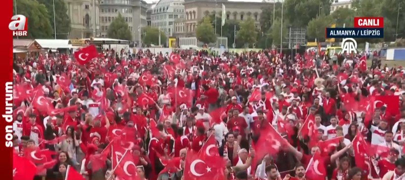 A Milli Futbol Takımı'nın, 2024 Avrupa Futbol Şampiyonası'nda oynayacağı Avusturya maçı öncesinde Türk taraftarlar, müsabaka öncesi tezahüratlar eşliğinde renkli görüntüler oluşturdu. Kritik maç öncesi Leipzig sokakları kırmızı-beyaza büründü. O anlar A Haber ekranlarına saniye saniye yansıdı.
