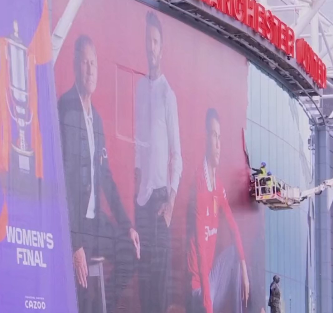 'Bir formadan fazlası' kampanyasının parçası olarak kulübün tarihindeki 'ikonik' 7 numaralarla birlikte stadın dışına yerleştirilen Ronaldo posteri, Portekizli futbolcunun eleştirilerinden birkaç gün sonra kulüp tarafından kaldırıldı.