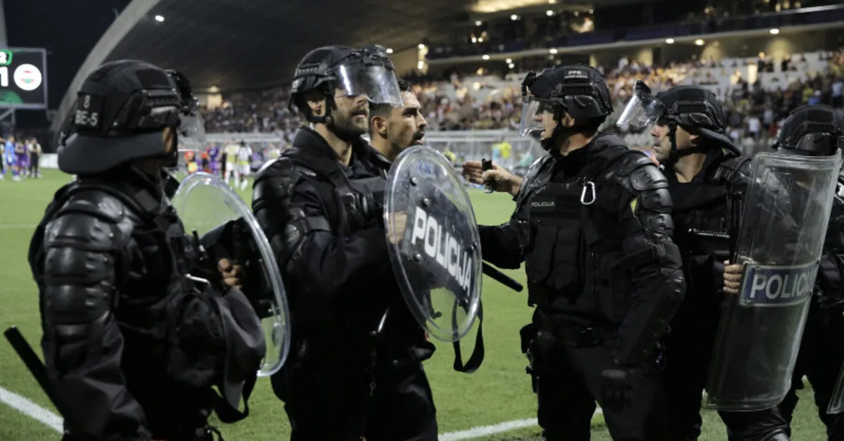 Bir pankart anlaşmazlığı nedeniyle gerginlik yaşandığı belirtilirken, Maribor taraftarlarının arasında karşılaşmayı seyreden Fenerbahçe taraftarlarına müdahale oldu.