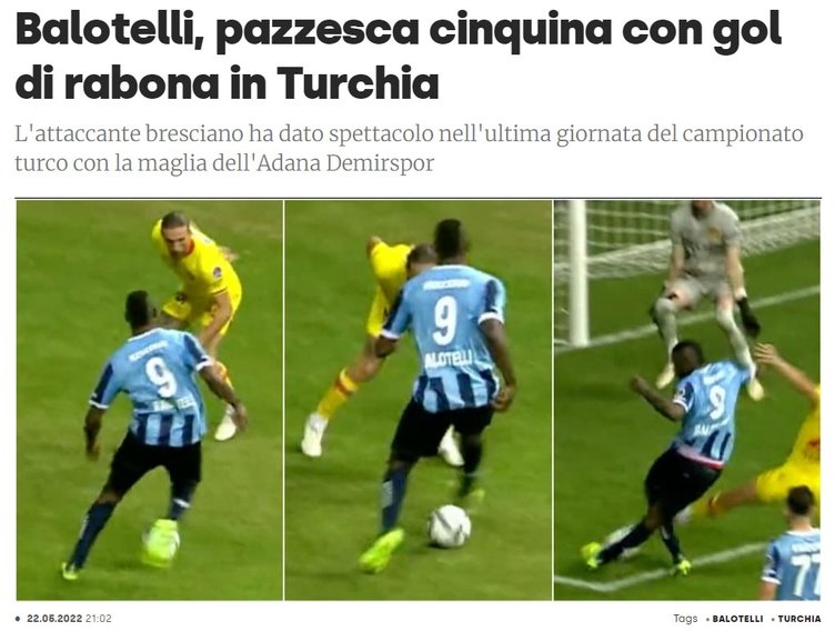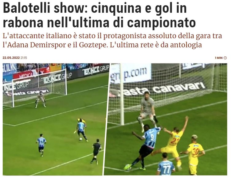 Balotelli, Adana Demirspor formasıyla Göztepe'ye karşı şov yaptı. İtalyan yıldız maçın kahramanı oldu. Balotelli maçı muhteşem rabona golü ile kapattı. Son golü adeta bir başyapıt gibiydi. Büyüleyici bir rabona ile kaleciyi çaresiz bıraktı.