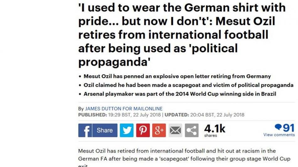 Mesut Özil sosyal medya hesabından yayınladığı 3 sayfalık mektup ile Almanya Milli Takımı'nı bıraktığını açıklaması Avrupa basınında deprem etkisi yarattı