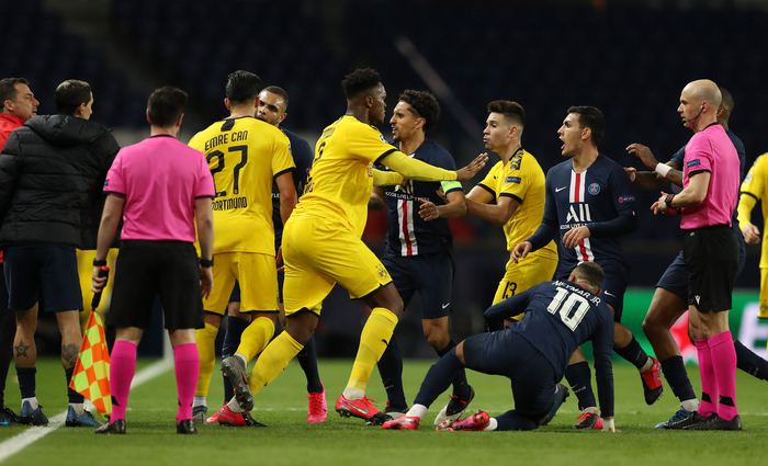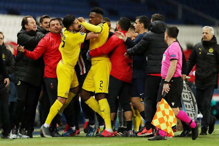 Şampiyonlar Ligi son 16 turu rövanş maçında PSG ile B.Dortmund karşılaştı. Mücadelenin 88. dakikasında Dortmund'un Türk asıllı Alman yıldızı Emre Can çılgına döndü. İlk olarak Neymar'la tartışan Emre Can, ardından Marquinhos'la kapışınca kırmızı kart gördü. PSG'den ise 3 isim sarı kart gördü.