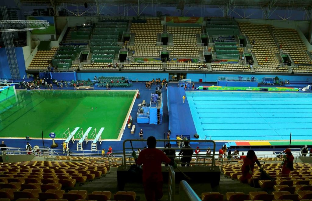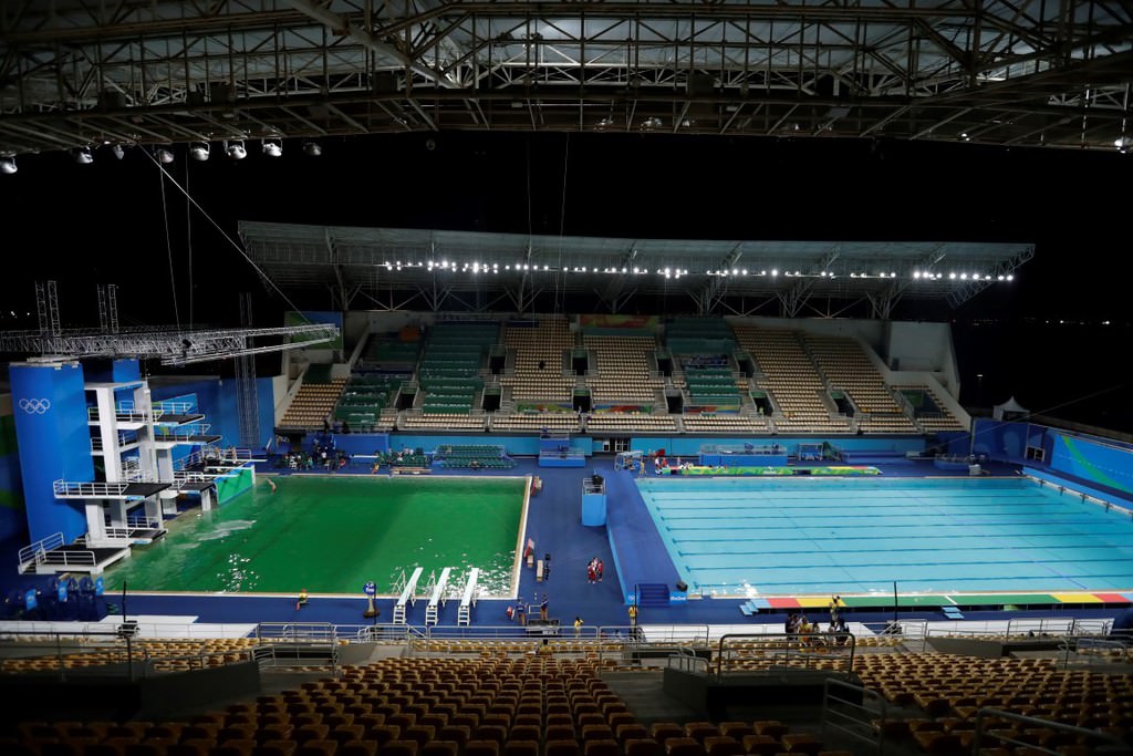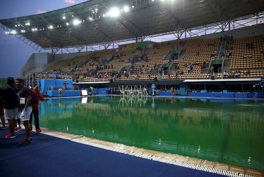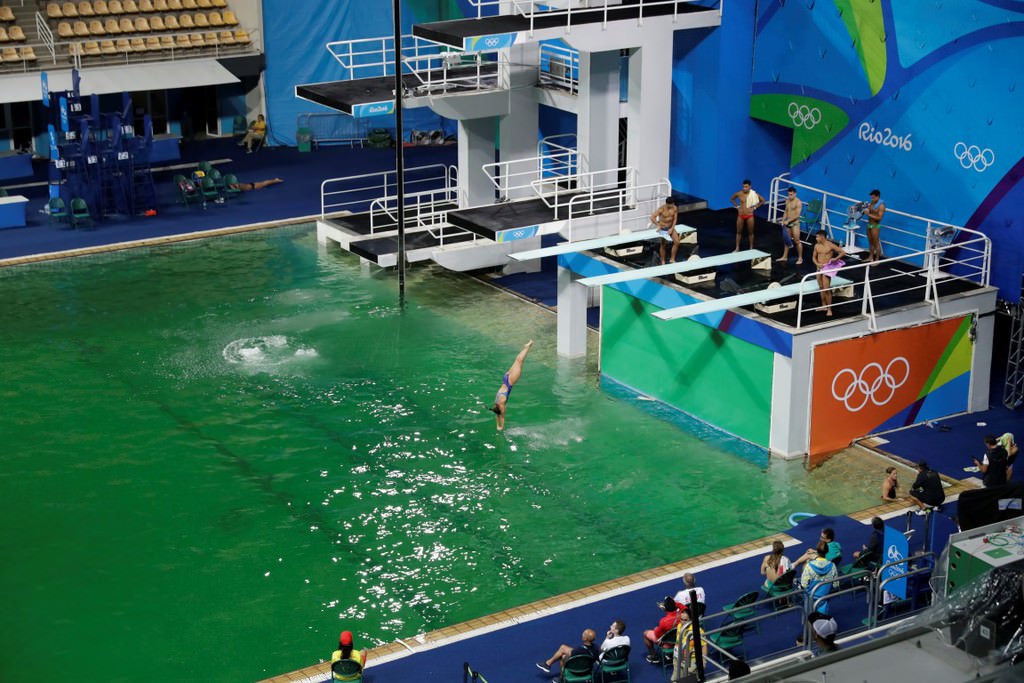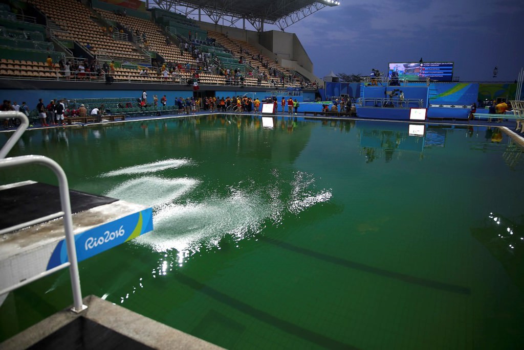 Brezilya'da düzenlenen 2016 Rio Olimpiyatları'nda, atlama yarışmalarına ev sahipliği yapan havuzun rengi yeşile dönüştü.