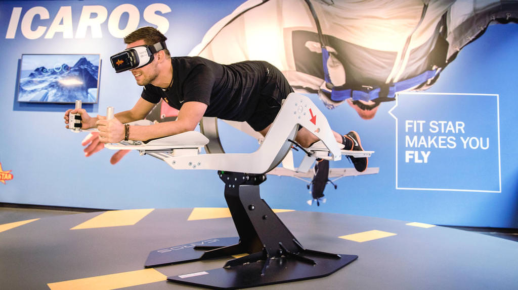 Bir yandan kendinizi dağların üzerinden uçarmış gibi hissederken, vücudunuz kendisini yapay gerçeklikteki ortama göre ayarlıyor ve böylece siz farkında olmadan kaslarınız çalışıyor. Bir tür jiroskopik tasarım olan ICAROS, zorluk derecesi farklı olan oyunlar sunuyor.