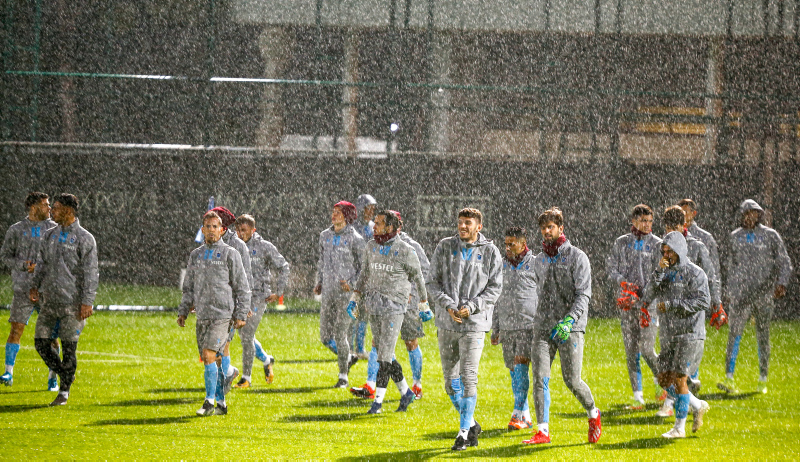 İdman, istasyon ve pas çalışmasıyla devam etti. Daha sonra 2 gruba ayrılan futbolcular, yarı sahada ve dar alanda yaptıkları çift kale maçla antrenmanı tamamladı. Yoğun yağış altında gerçekleştirilen idmanı Trabzonspor Kulübü Başkanı Ahmet Ağaoğlu da takip etti.