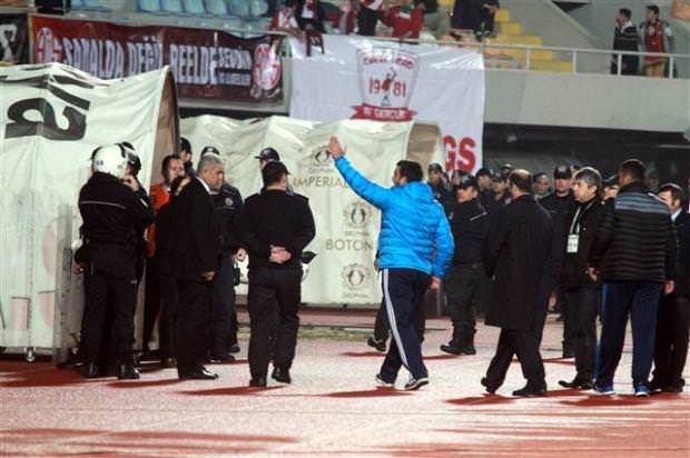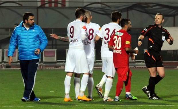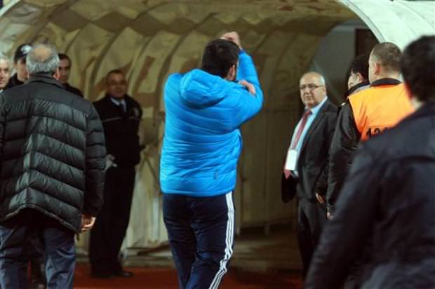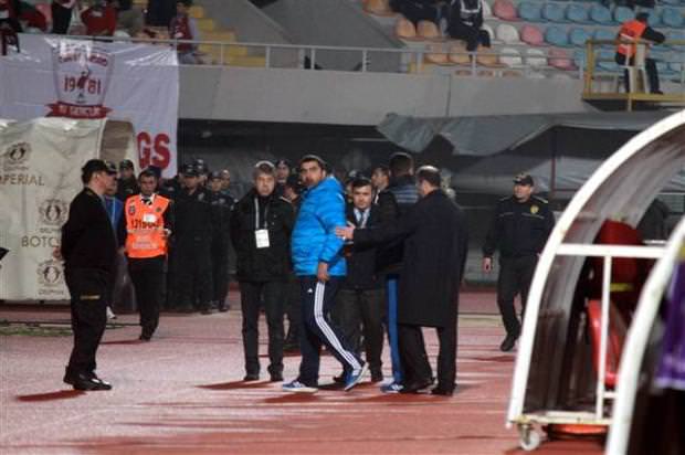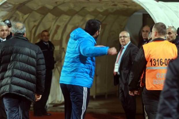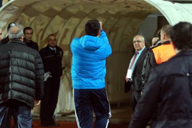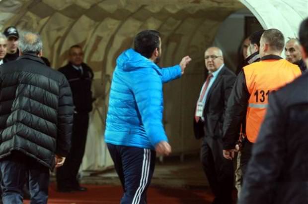 Önce sözlü olarak atışan iki teknik adam, bir yandan birbirlerine el kol hareketleri yaptı. Olayı gören hakem Tolga Özkalfa bunun üzerine Ümit Özat'ı tribüne gönderdi.
