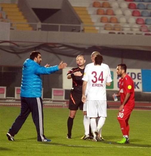 Akdeniz Üniversitesi Stadı'ndaki karşılaşmanın 45. dakikasında Antalyaspor Teknik Direktörü Hami Mandıralı ile Elazığspor'un hocası Ümit Özat, bir taç atışı sonrası tartışmaya başladı.