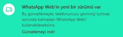 Bu güncelleme çok yuva yıkar! Artık telefona gerek yok! WhatsApp Web'ten bomba özellik! Dünyanın en popüler mesajlaşma uygulamalarından birisi olan WhatsApp Web sürümü için yeni özellikler devreye alındı. WhatsApp Web uygulamasına QR kodunuzu okutarak yeniden giriş yaptığınız takdirde artık internetsiz bir şekilde WhatsApp Web kullanabileceksiniz.