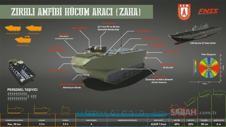 ZAHA'nın, benzerlerine göre, araç içinde taşınacak personel sayısı, balistik ve mayın koruma seviyesi, karada ve suda sağlanacak performans kriterleri konularında üstün olması hedefleniyor.