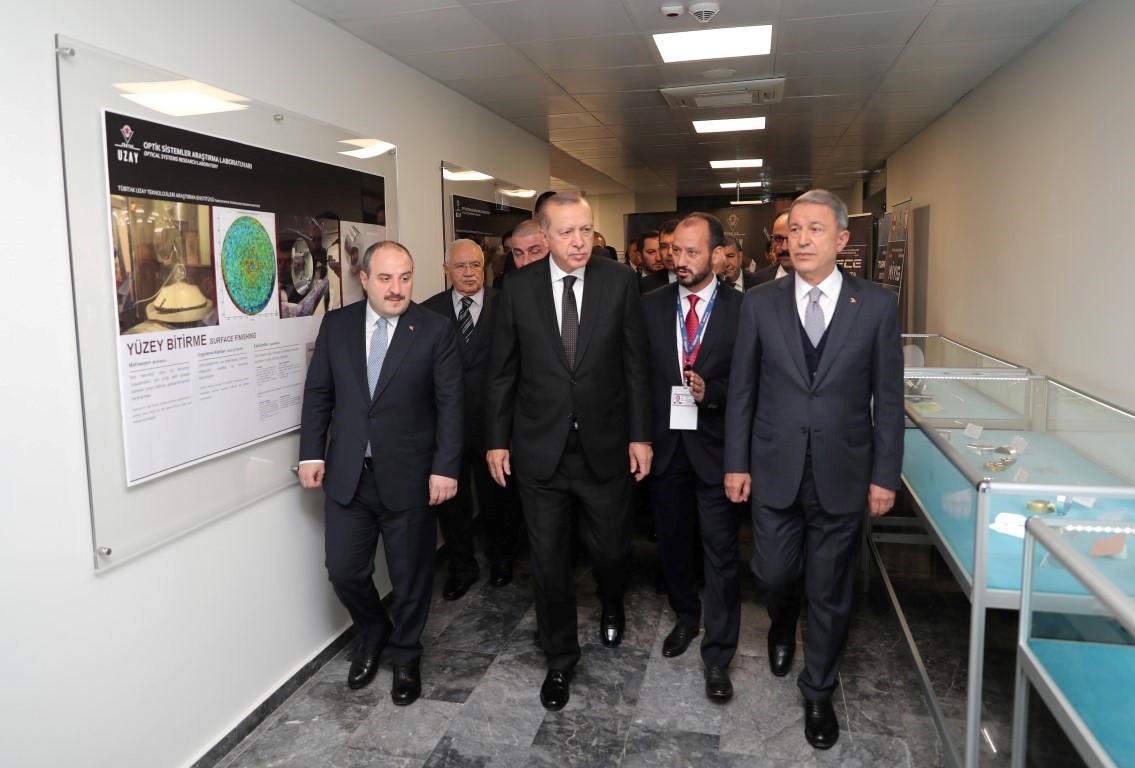 Milli teknoloji geliştirme altyapılarının, optik sistemler araştırma laboratuvarının ve Türk Silahlı Kuvvetlerine teslim edilen yeni nesil mühimmatların Türkiye için hayırlı olmasını dileyen Erdoğan, bu projelerin Türkiye'ye kazandırılmasında emeği geçenleri tebrik etti.