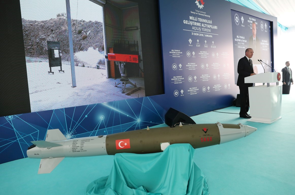 Sapan'a benzer sistemlerin tasarımı ve güvenli çalışması için tüm dünyada çalışmaların devam ettiğini kaydeden Erdoğan, "Biz bu kritik teknolojiyi ülkemizde üretmeyi başladık. Proje kapsamında bir kilogramlık mühimmatı saniyede 2 bin metreden başlayan hızlarla fırlatmayı hedefliyoruz." dedi.