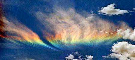 YANAN GÖKKUŞAĞI Dünyanın her yerinde zaman zaman gökkuşağı oluşuyor. Ama ABD'nin Idaho Eyaleti'nde (Washington eyalet sınırında) oluşan gökkuşakları bir başka. Görenleri hem şaşrıtan hem de büyüleyen cinsten. Çünkü bu gökkuşakları bildiğimiz gökkuşaklarından çok farklı. Dağılmış gibi görünen ve bir alevi andıran gökkuşağını inceleyen bilim adamları burada meydana gelen fenomeni şöyle açıklıyorlar: Güneş ufuktan 58 derece tepede olduğu sırada, yüksek seviyede cirus tipi bulutlar oluştuğunda ve de bu bulutlar heksagonal (altıgen) su kritallerinden oluştuğunda, güneş ışınları bu bulutlardan geçerken gökkuşağı renkleri oluşuyor.
