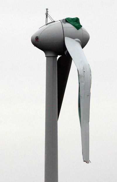 İngiltere'nin Lincolnshire eyaletinde bir rüzgar türbini böyle zarar görmüştü. Çevre sakinleri olayın olduğu sabah parlak bir ışık gördüklerini söylemiş ve olayda UFO'ların parmağı olabileceğini ima etmişlerdi.