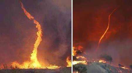 ŞEYTAN ATEŞİ Ya da ateş hortumları. Birkaç metre yüksekliğe kadar ulaşabilen alevlerden oluşan bir hortum. Birkaç dakika sürüyor. Bilim adamlarına göre sıcak hava akımları sonucunda oluşuyor ancak hangi faktörlerin biraraya gelmesinin sonucunda oluştuğu kesin olarak bilinmiyor. Daha çok çalılıklarda çıkan yangınlarda meydana geliyor ama çok ender görülüyor.