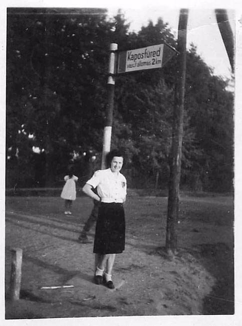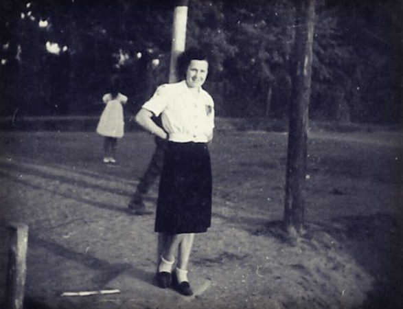 "Bu fotoğraf 1943 yılında Kaposfüred, Macaristan'da çekildi. Öndeki annem, fotoğrafı babam çekmiş. Arkadaki kızın ne yaptığını kimse bilmiyor, ancak bakarsanız kolları ve yüzü yok. Bir çeşit şeytan gibi..."