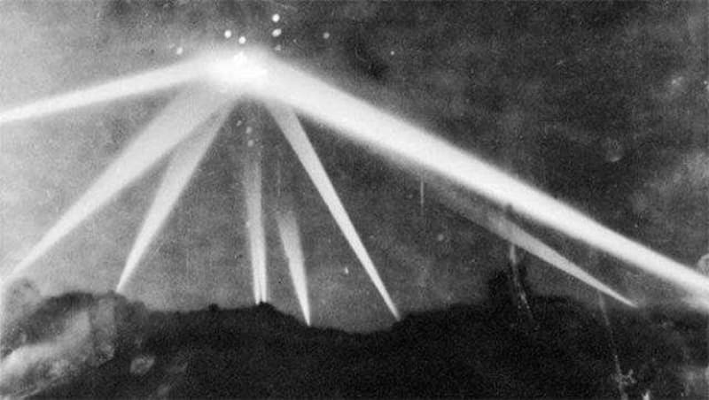 2. Dünya Aavaşı sırasında 1942'de meydana gelen olayda Los Angeles semalarında devasa büyüklükte ve ışıklar saçan bir cisim belirir. Bu aracın öncelikle Nazilerin gizli bir silahı olduğu düşünülse de, söz konusu hava taşıtını yakından görenlerin tarifleri, aracın dünya dışı bir teknoloji olduğuna dair izlenimler yaratmıştır. Savaşın gergin atmosferi sebebiyle panik olan Los Angeles'taki askeri birlikler top atışlarıyla cismi düşürmeye çalışırlar. Bu fotoğraf cisme ait en net görüntü olup, cisme açılan atışların çoğu isabet etmesine rağmen araç düşürülememiştir. Geldiği gibi birden ortadan kaybolan cisme açılan ateş olayın Los Angeles Savaşı olarak anılmasına sebep olmuştur.