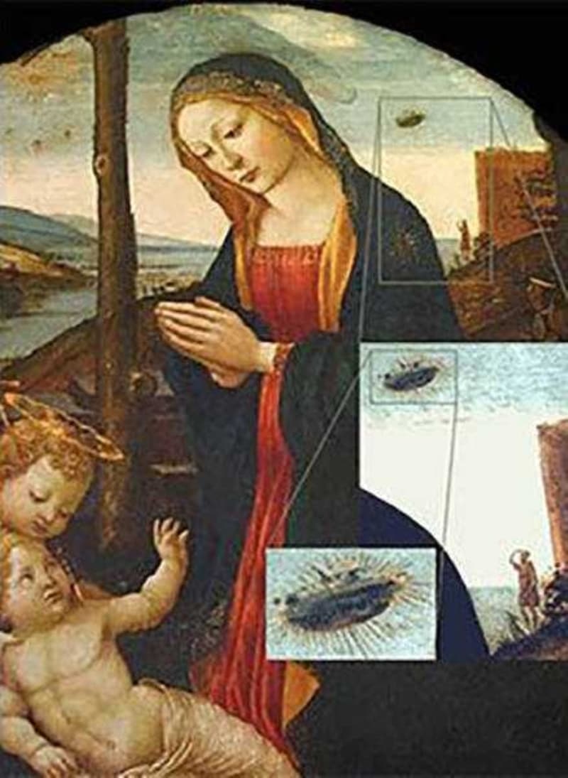 15. yüzyılda Domenico Ghirlandaio tarafından çizilen bu son derece ünlü tabloda Hz. Meryem ve Aziz Giovannino resmedilmiş. Ancak arka planda tam anlamıyla bir UFO gözlemi söz konusu. Palazzo Vecchio koleksiyonunda yer alan bu tablodaki UFO'nun sırrı yüzyıllardır çözülemiyor.
