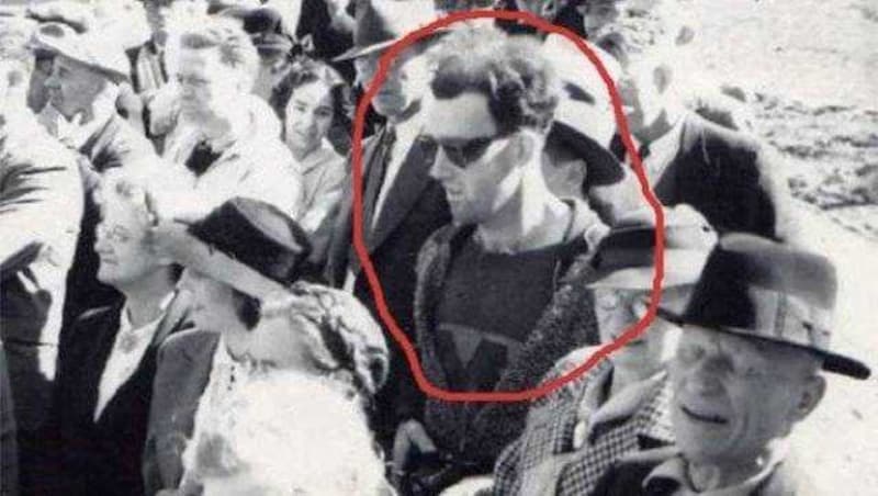 1941 yılında çekilmiş bu fotoğraf, dünyada zaman yolculuğunun temsili fotoğrafı konumunda. Bir köprü açılışı sırasında çekilen fotoğrafta, dönemin kılık kıyafetiyle alakası olmayan giyinimde bir adam ve elindeki kayıt cihazı dikkat çekiyor. Zaman yolculuğu ne kadar gerçektir bilinmez ancak söz konusu kişinin gözlüklerinden tutun tepeden tırnağa zamanının çok ötesinde olduğu kesin.