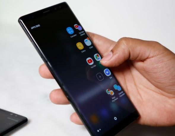 Galaxy Note8, şimdiye kadarki en büyük Note ekranına sahip olmasına rağmen ince gövdesi sayesinde tek elle kolay tutuş imkanı sunuyor. 6.3 inç büyüklüğünde Quad HD+ Super AMOLED Sonsuz Ekranı ile fazla kaydırma yapmadan daha fazlasını görebiliyorsunuz. Galaxy Note8, video izlemek, okumak ve çizim yapmak için daha fazla alan sağlıyor ve bu da Galaxy Note8'i şimdiye kadarki en hünerli telefon yapıyor.