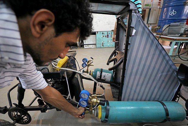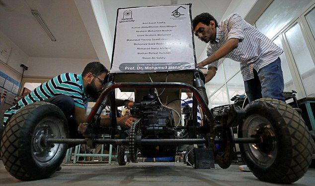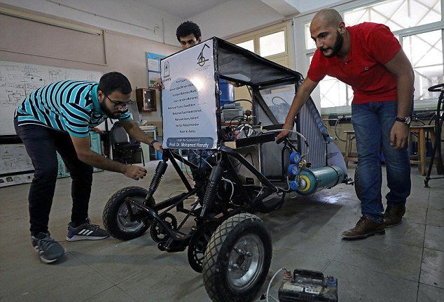 Kahire'deki Helwan Üniversitesi'nde eğitimini sürdüren bir grup öğrenci sıkıştırılmış oksijen ile çalışan otomobillerini tanıttı.