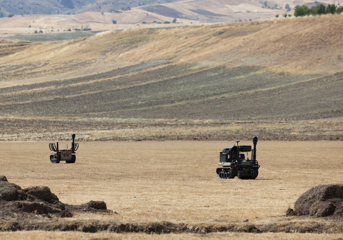 "2 öncü İHA'mız havada keşif yapıyorlar. Bunların tespit ettiği hedeflere yerdeki insansız kara araçları yönlendirilebiliyor. Yerdeki insansız kara araçları hedefleri tespit ettikten sonra ayrıca o bölgeye sürü dronlarımızı da göndererek bölgedeki keşfi oradan sürdürmeyi sağlıyoruz.