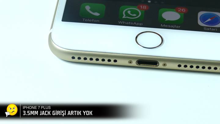 iPhone 7 ve 7 Plus üzerinde artık 3.5mm Jack girişi yok. Apple'dan önce, Motorola'nın 5.19mm inceliğindeki Moto Z ve LeEco'nun Le 2 ve Le Max 2 telefonlarında da 3.5mm Jack girişi kaldırılmıştı. Apple bu teknolojiyi eski olarak nitelendirip kablosuz kulaklık kullanımına geçiş yapmak istiyor. Eski kulaklıklarımız için kutu beraberinde bir adaptör geliyor. Ancak bu adaptörün şarj sırasında kullanılması da lightning portunu kullandığı için mümkün olmayacak.