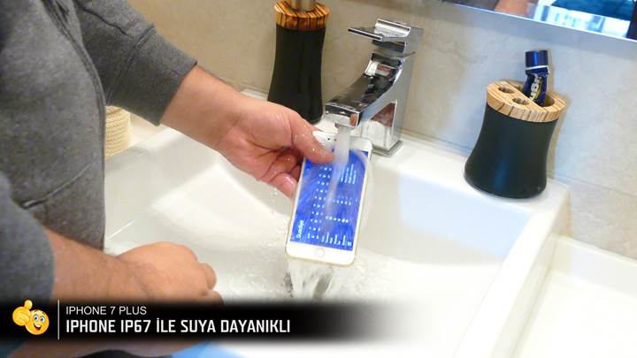 iPhone artık IP67 sertifikasına sahip. 1 metreye kadar 30 dakika suya dayanıklı ve tamamen toz geçirmez. 3.5mm Jack girişinin kaldırılması ve telefonun iç yapısında aralık bırakılmaması ile bu dayanıklılık sağlanmış. Apple yine de su sızmalarını garanti kapsamı dışında tutuyor. Telefonun sağlam yapısını sağlayan yapıştırıcılar su geçirmezlik açısından çok önemli. Herhangi bir tamir sebebiyle içinin açılması durumunda bu yapı bozulabilir. Donanımhaber olarak daha önce 'de telefonun tuzlu suya karşı direncini 50 dakika boyunca test etmiştik. iPhone fazla basınca maruz kalmadığı ve sudan hemen sonra tatlı su ile yıkandığı için herhangi bir sorun çıkmamış ve cihazı kullanmaya devam edebilmiştik. Apple ayrıca suya maruz kalınmasından sonraki beş saat telefonun mutlaka şarj edilmemesi konusunda uyarıda bulunuyor. Lightning girişinin üzerinden kısa devre yaşanmaması için bu süre gerekli. Telefonlarınızın uzun kullanım sonrasında yıpranma payı ile suya direnci zamanla düşebilir bunu da unutmamak da fayda var.