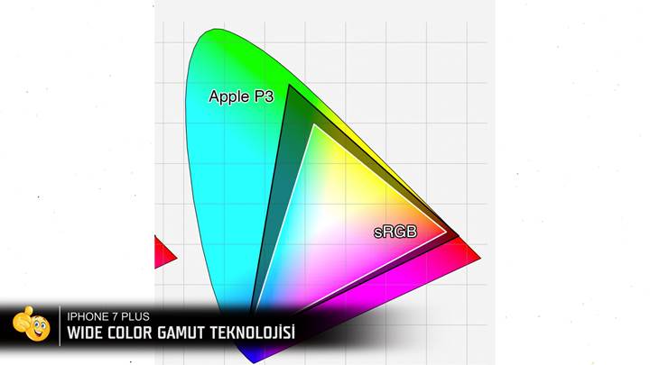Rakiplerinin QHD çözünürlüklerine karşısın Full HD ekranda kalmayı tercih eden iPhone aynı zamanda Wide Color Gamut teknolojisi ile karşımıza çıkıyor. iPhone 7 ve iPhone 7 Plus DCI-P3 geniş renk skalası ile klasik SRGB renk düzenine göre daha fazla renk üretiyor. Film endüstrisinde standart olarak kullanılan DCI-P3 ile renklerin canlılığı ve doğruluğu artıyor. Parlak, enerjik yeşiller ve canlı kırmızılar Apple'ın bu yeni çalışmasında ortaya çıkıyor. Apple buradaki hamlesi ile bir nevi Amoled ekranlardaki derin ve zengin, parlak renklerin dikkat çekmesi ile oluşan renk yoğunluğunu LCD ekranına getirmek istiyor.